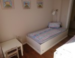 1 Schlafzimmer mit Kinderbett und Wickelkommode