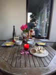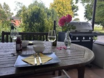 Die Gummistiefel können draußen bleiben, denn vor dem Eingang gibt es einen überdachten Freisitz. Hier kann man am Abend auch gemütlich draußen sitzen und grillen.